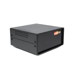 La boîte en quatre parties est dotée d'une face avant et d'une face arrière en ABS de 2 mm, ce qui est idéal pour découper facilement des trous pour les connecteurs et les interrupteurs dans les environnements domestiques. Le dessus et le dessous sont en acier massif de 1 mm d'épaisseur avec une finition gris foncé. Le couvercle supérieur comporte des trous d'aération. La boîte repose sur quatre pieds en caoutchouc de 8 mm de haut. Les couvercles sont vissés aux panneaux à l'aide de quatre vis noires à tête cruciforme.