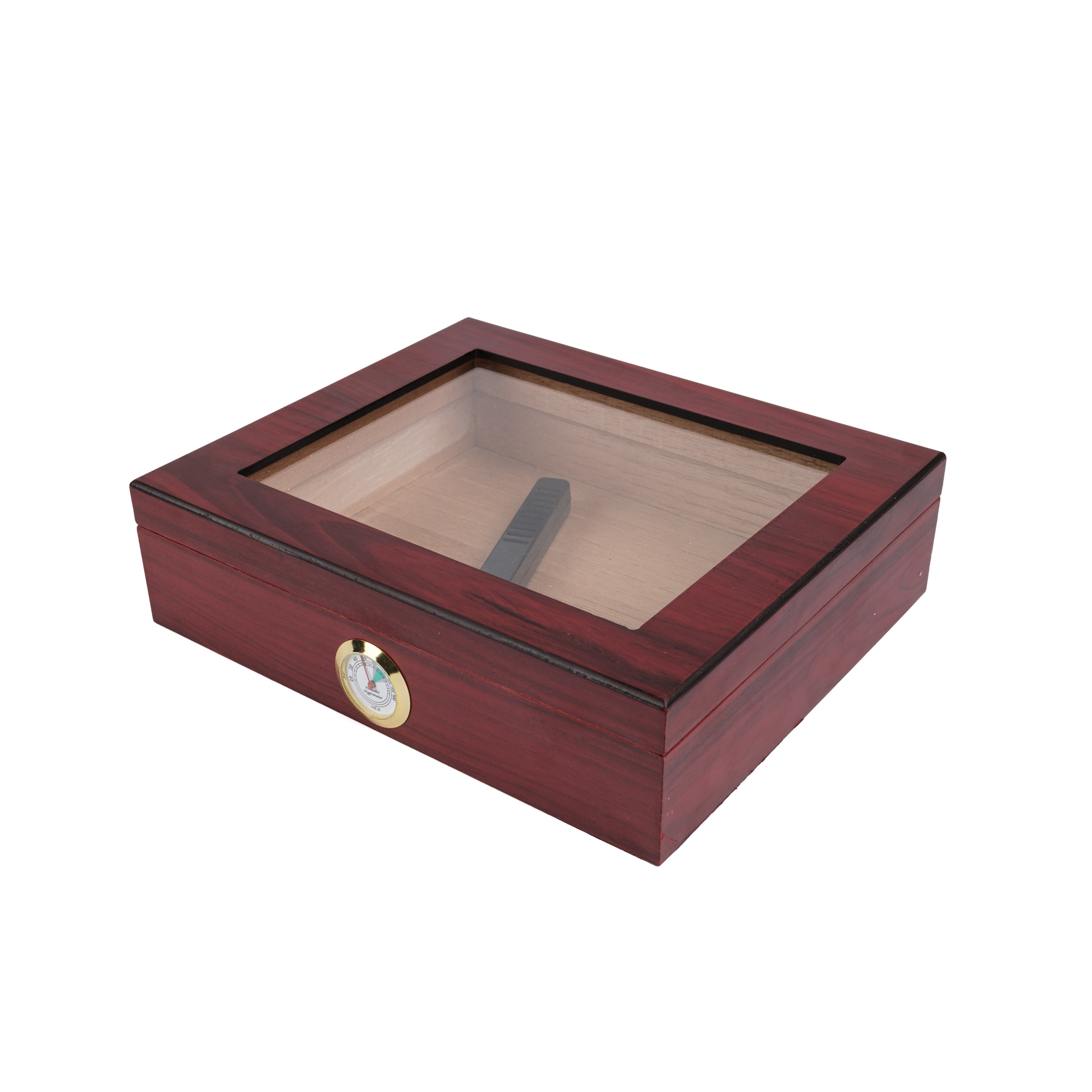 Humidificateur pour 25 cigares - rouge-brun avec hygromètre analogique et humidificateur