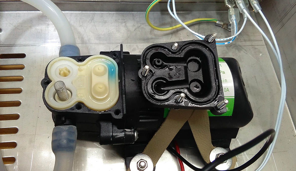 Le distributeur est équipé d'une pompe d'aspiration qui peut aspirer le liquide distribué dans le système, sans utiliser de pompes externes supplémentaires, et le distribuer en fonction du réglage. La longueur du tuyau d'alimentation est de 120 cm (extensible à un maximum de 2 mètres). L'extrémité du tuyau est équipée d'un filtre à particules remplaçable. Le tuyau de distribution mesure 90 cm et est équipé d'une buse en plastique de 9 mm de diamètre. Le distributeur comprend également un support pratique pour le tuyau de distribution, qui est fixé au châssis du distributeur. Le support peut être tourné librement autour de son axe. La hauteur du tuyau de distribution peut également être réglée. La hauteur maximale du tuyau de distribution par rapport au plan de la table est d'environ 16 cm.