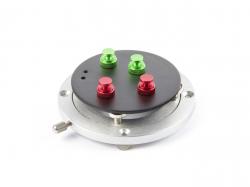 La plateforme pivotante entièrement métallique de 120 mm de diamètre est fabriquée en alliage d'aluminium, la plateforme repose sur des pieds en caoutchouc qui maintiennent l'ensemble du système dans une position stable, sur la face supérieure se trouvent 4 aimants puissants qui fixent le support de circuit imprimé de 96 mm de diamètre à la plateforme pivotante, le support est magnétique. Les circuits imprimés sont fixés au support à l'aide de 4 clips magnétiques. Les onglets ont un aimant puissant d'un côté et peuvent être déplacés librement sur la plaque de support, sur le côté supérieur il y a des bords fraisés sur les onglets pour serrer le circuit imprimé, après le montage le circuit imprimé est à 9mm de hauteur de la surface du support. Le support peut être utilisé non seulement pour observer des circuits imprimés et d'autres petits objets au microscope, mais il constitue également un excellent outil pour souder et entretenir des circuits imprimés, des commutateurs et d'autres composants qu'il est très difficile de souder sans le support. La plate-forme est orientable sur 360° et peut être bloquée dans n'importe quelle position à l'aide de la vis de blocage.