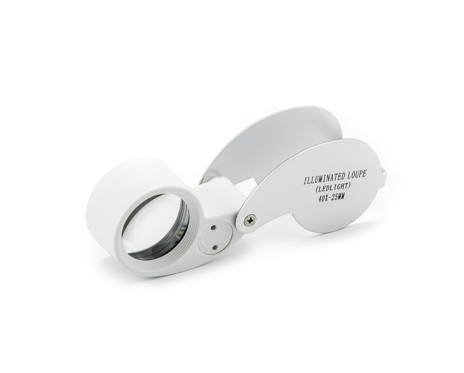 Loupe de service pliable pour l'électronique et la mécanique fine avec un grossissement 40x et un éclairage LED.