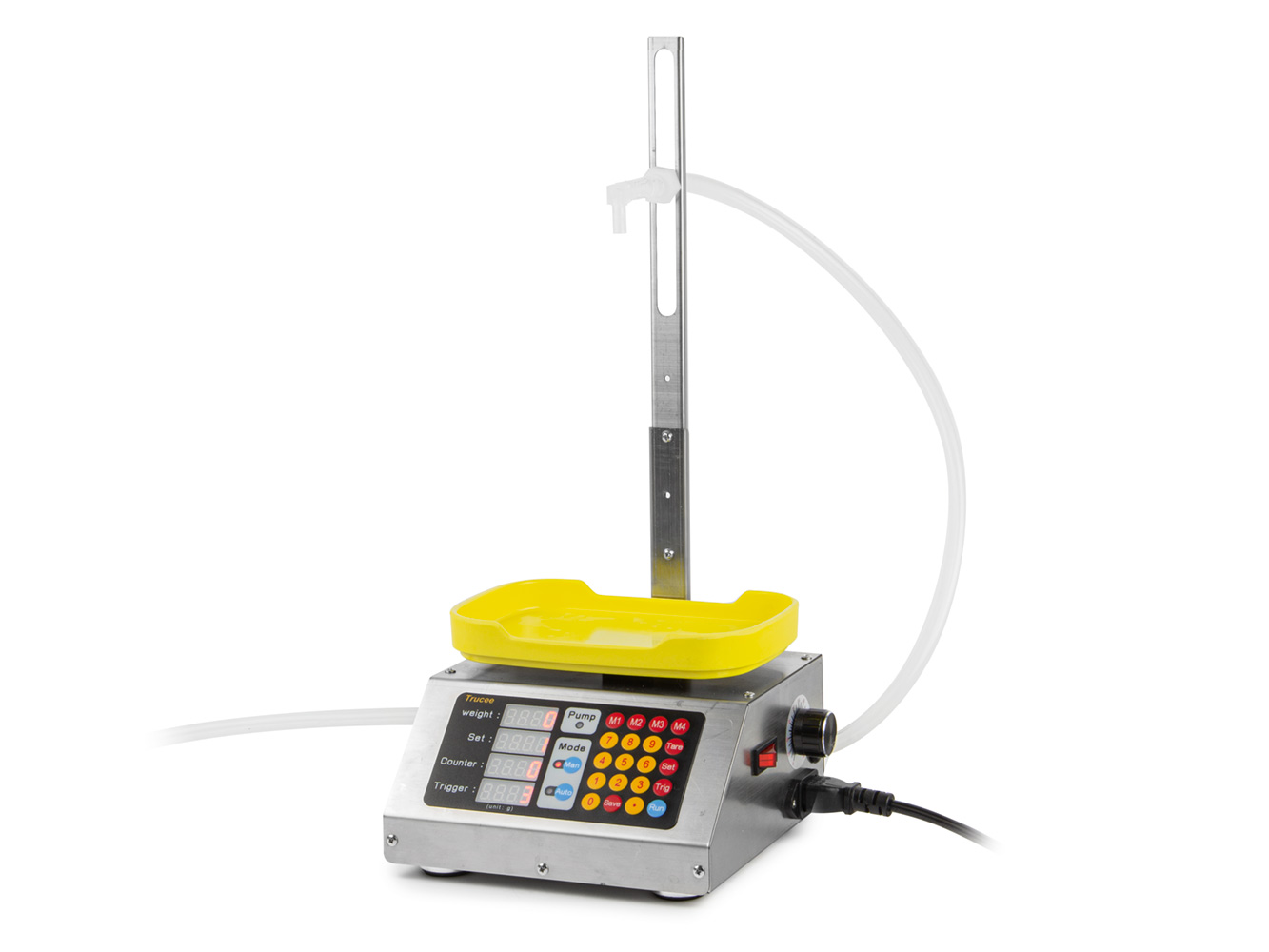 Le distributeur avec trieuse pondérale est utilisé pour transférer et distribuer/distribuer du liquide d'un grand récipient à des récipients plus petits. Le distributeur peut être utilisé pour distribuer des substances liquides dont la viscosité peut atteindre environ 1000 cps (eau-glycérol).