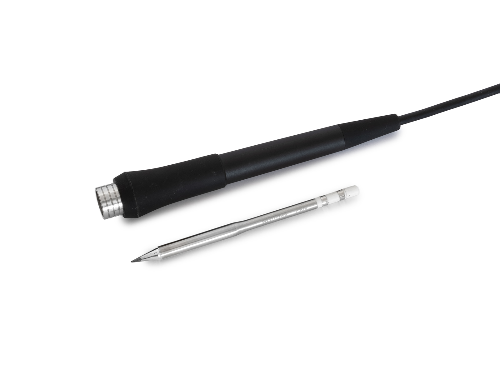 La microsoudeuse utilise des pointes de type T60 à longue durée de vie, les pointes ont un chauffage actif intégré et un capteur de température, grâce à cela le chauffage de la pointe est très rapide, grâce au capteur la température est détectée directement dans la pointe de la pointe, cela permet à l'électronique de la microsoudeuse de surveiller constamment la température de la pointe et d'effectuer sa correction afin qu'il n'y ait pas de fluctuations de température pendant la soudure.
