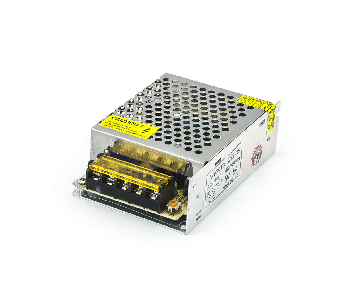 Alimentation industrielle à découpage WXD-25-5 AC 230V / DC 5V 5A pour une puissance d'entrée maximale de 25W conçue pour être intégrée ou dans des armoires de distribution pour alimenter suite du texte